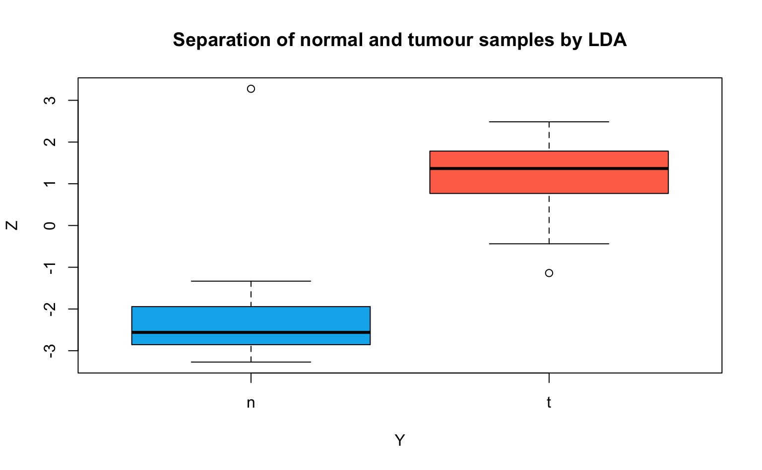 variable indicates whether the sample came from tumourous (t) or normal (n)