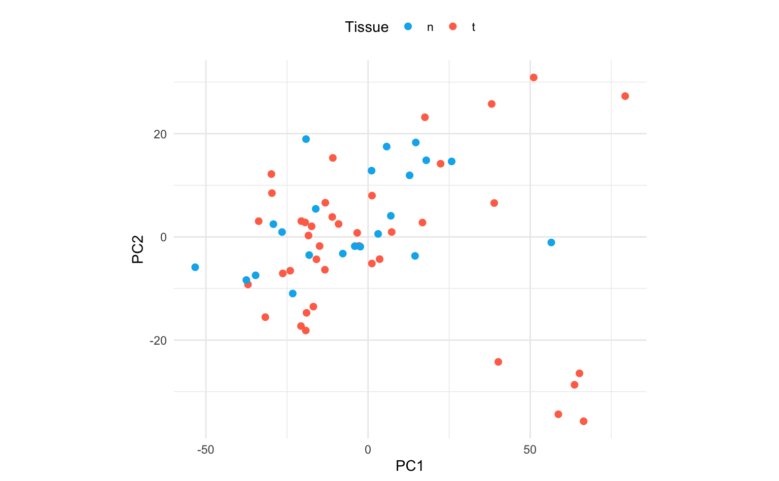 scores_1_2 <- data.frame(PC1 = pca_x$x[, 1], PC2 = pca_x$x[, 2], Tissue = Y)