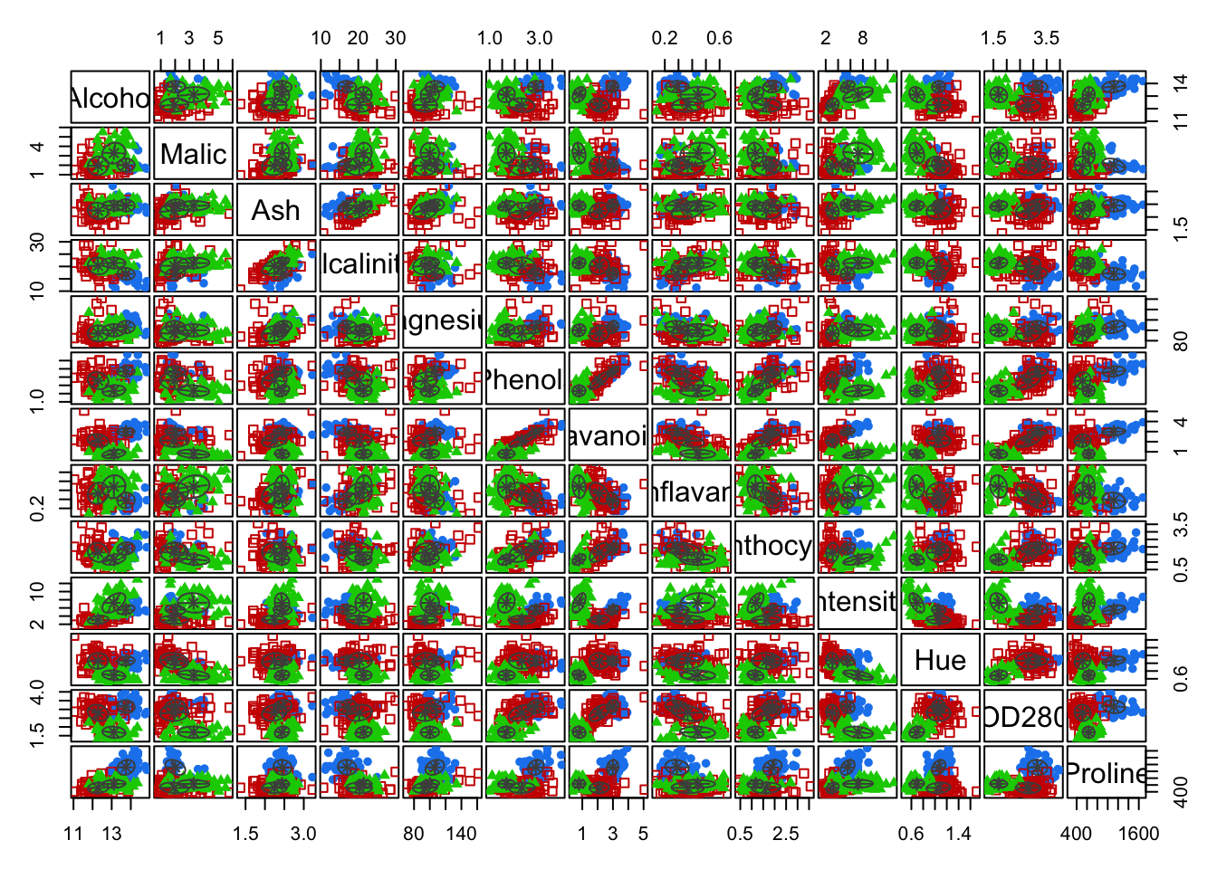 class <- factor(wine$Class, levels = 1:3, labels = c("Barolo", "Grignolino", "Barbera"))