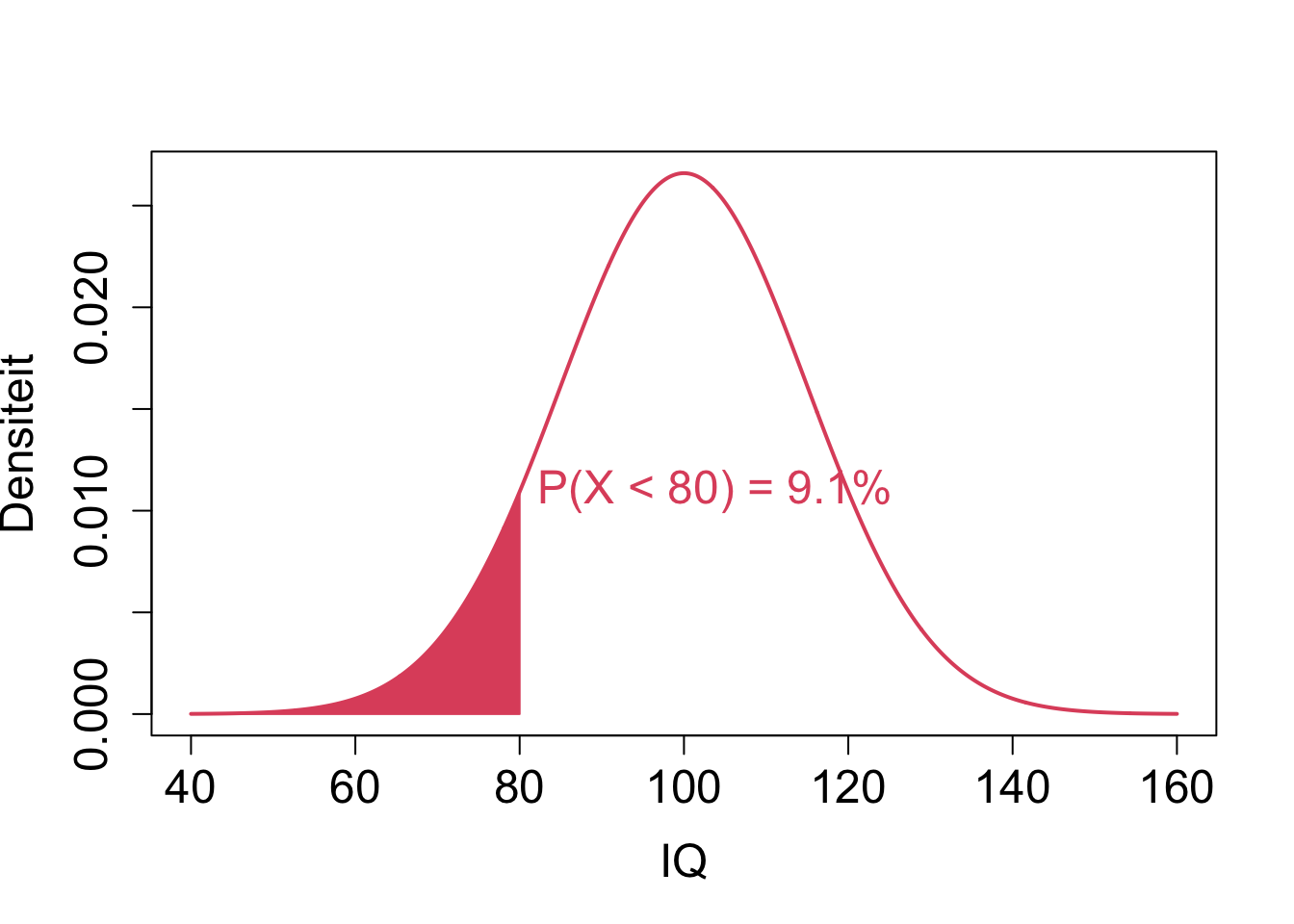 pnorm(q =90, mean =100, sd =15)