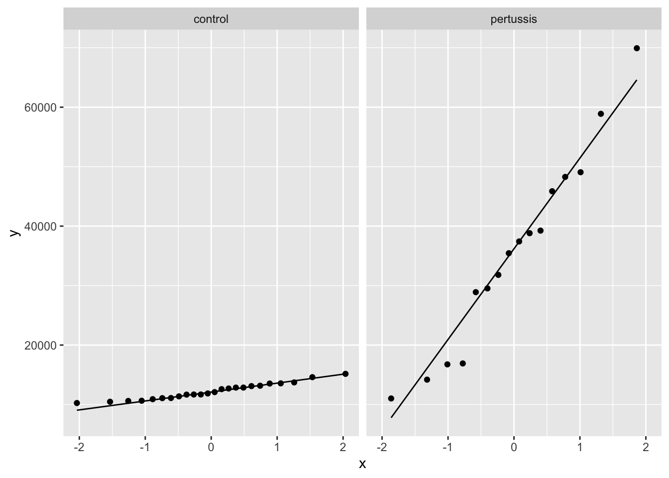 Both the mean and variance of the data seems to differ between control rats and rats infected with pertussis.