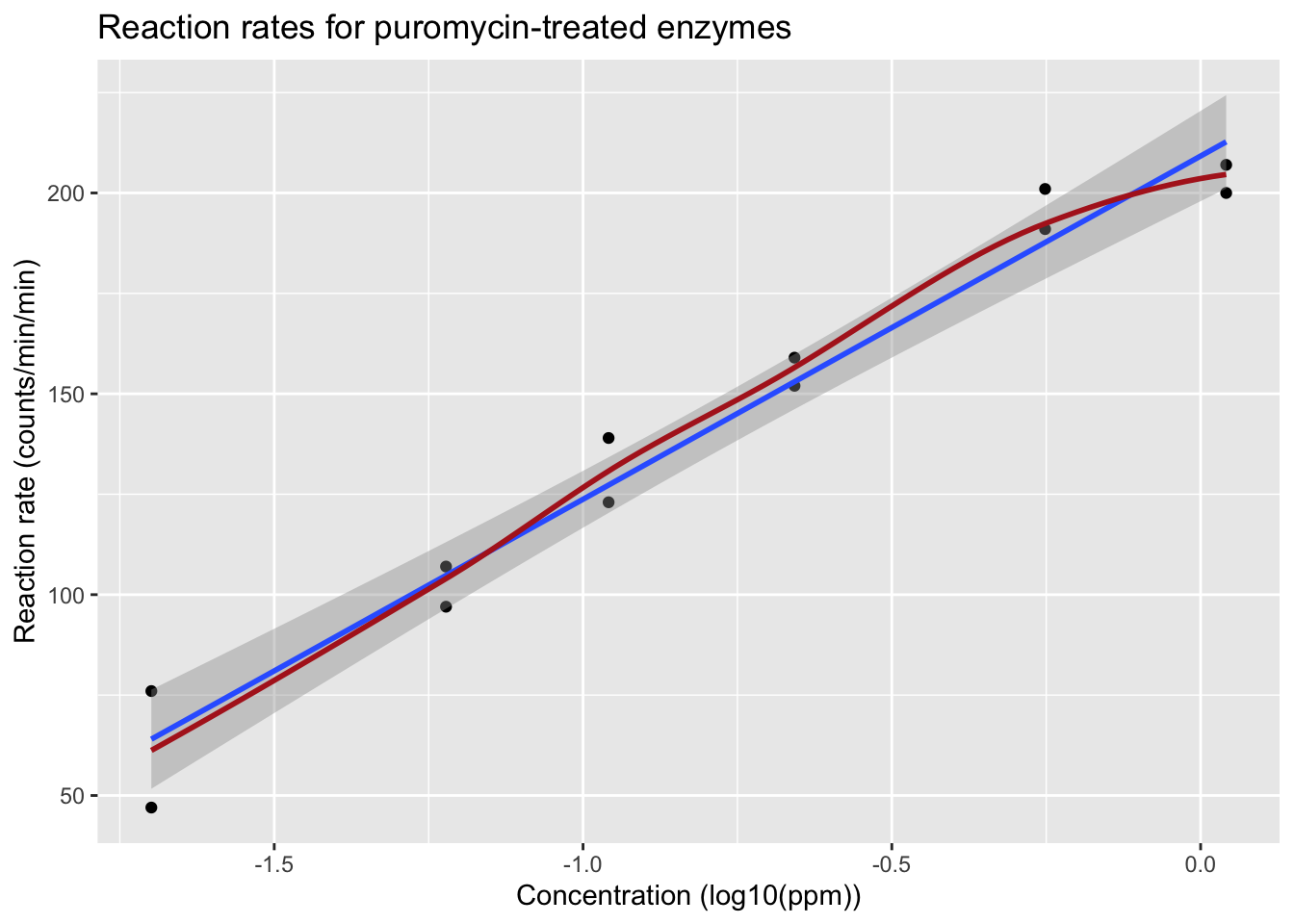 ggtitle("Reaction rates for puromycin-treated enzymes")