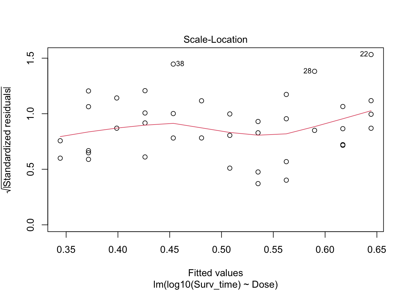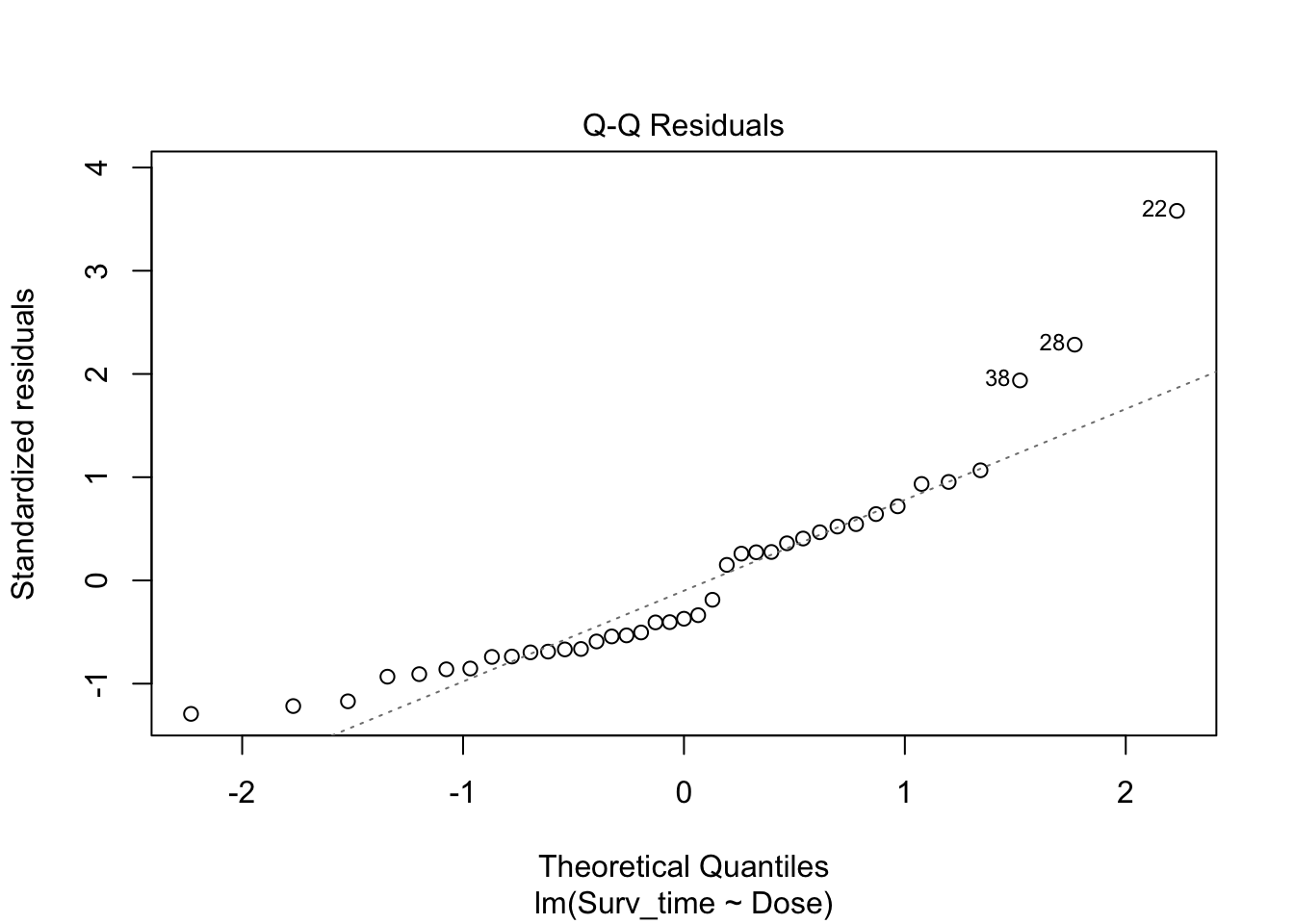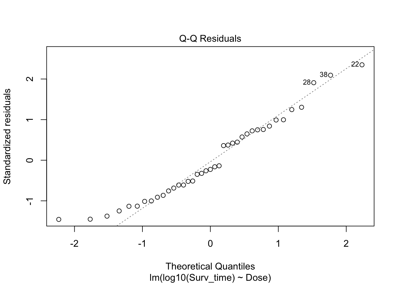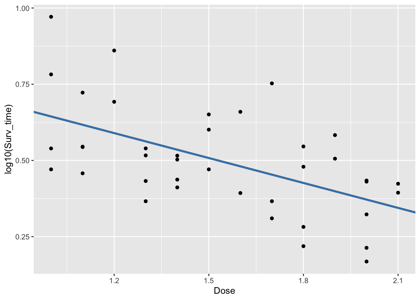 ## lm(formula = log10(Surv_time) ~ Dose, data = poison_dojo)