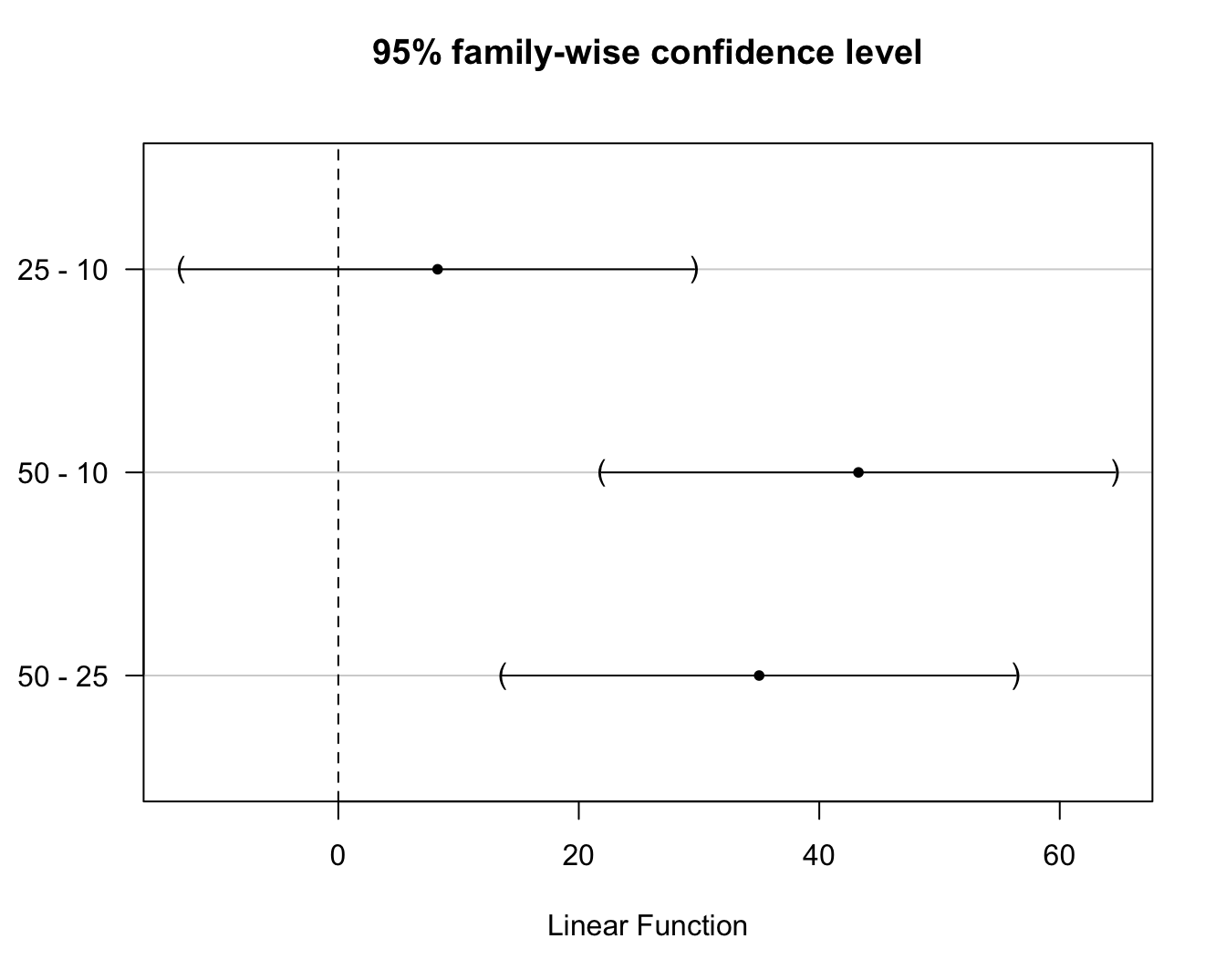 (All p-values and confidence intervals for post-hoc tests are corrected for multiple testing using the Tukey method).