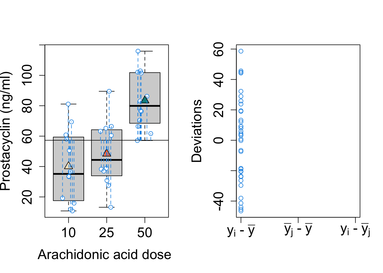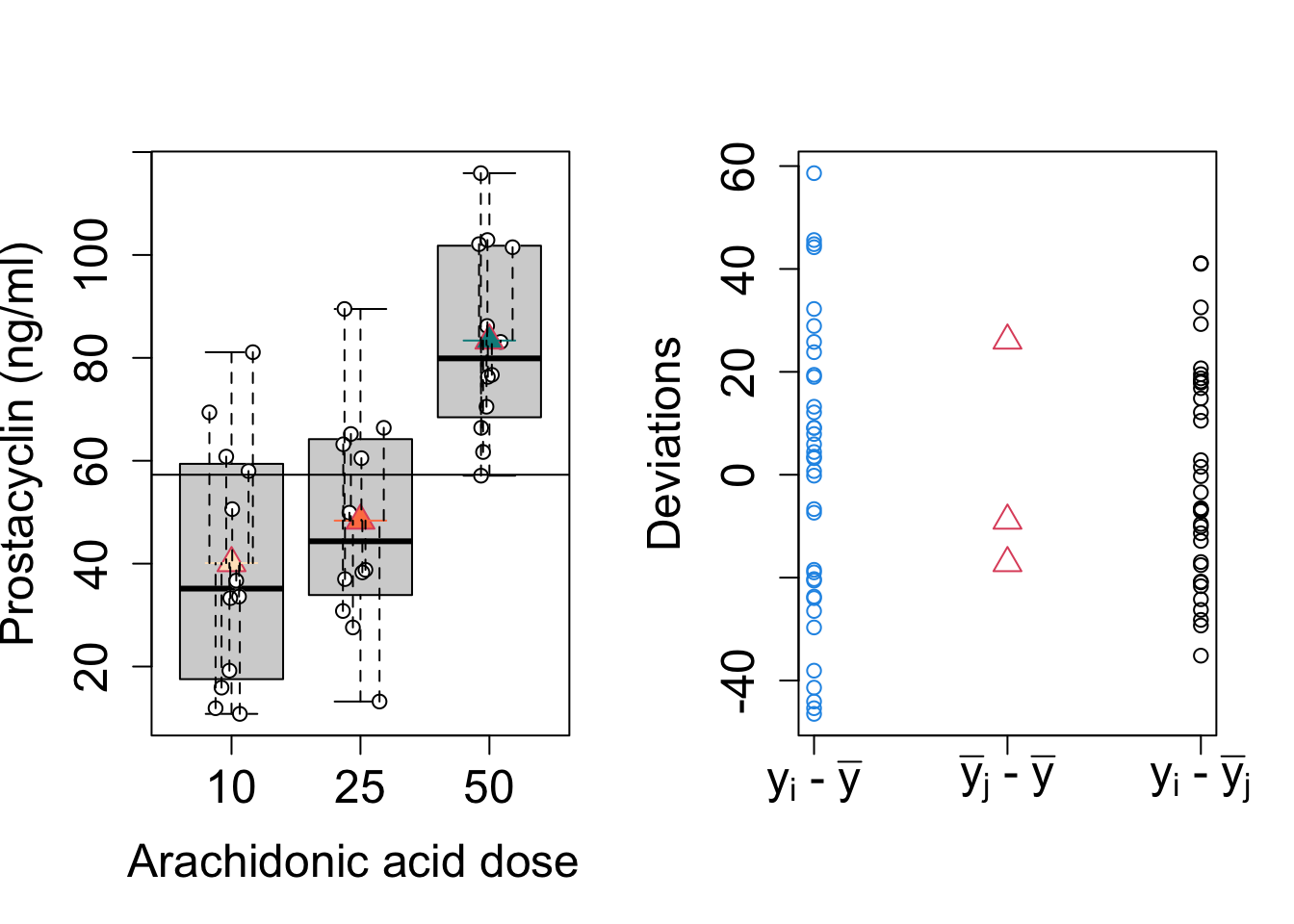 - There is an extreme significant effect of arachidonic acid on the average prostacyclin blood concentration in rats (\(p<0.001\)).