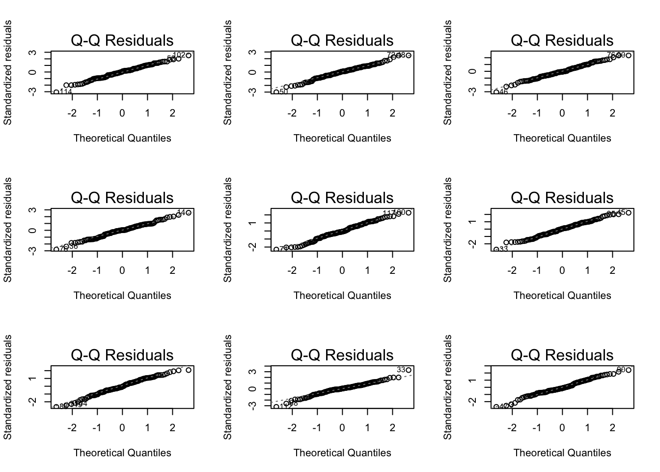 The most deviating QQ-plot of the residuals in the nine simulation runs: