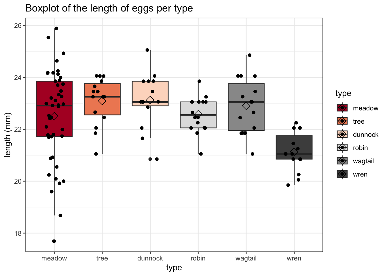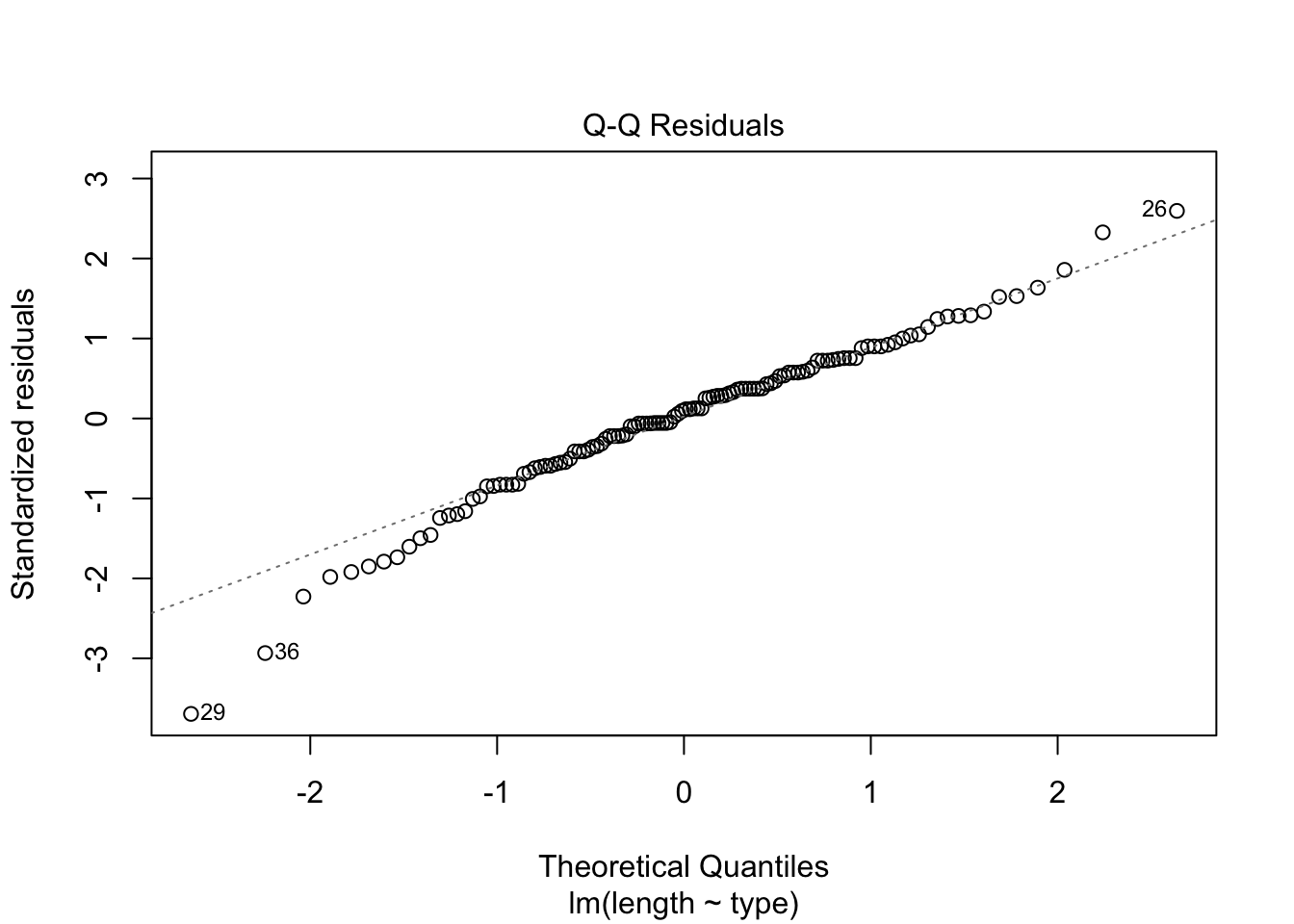 ## Fit: lm(formula = length ~ type, data = Cuckoo)