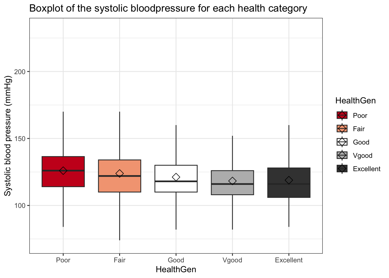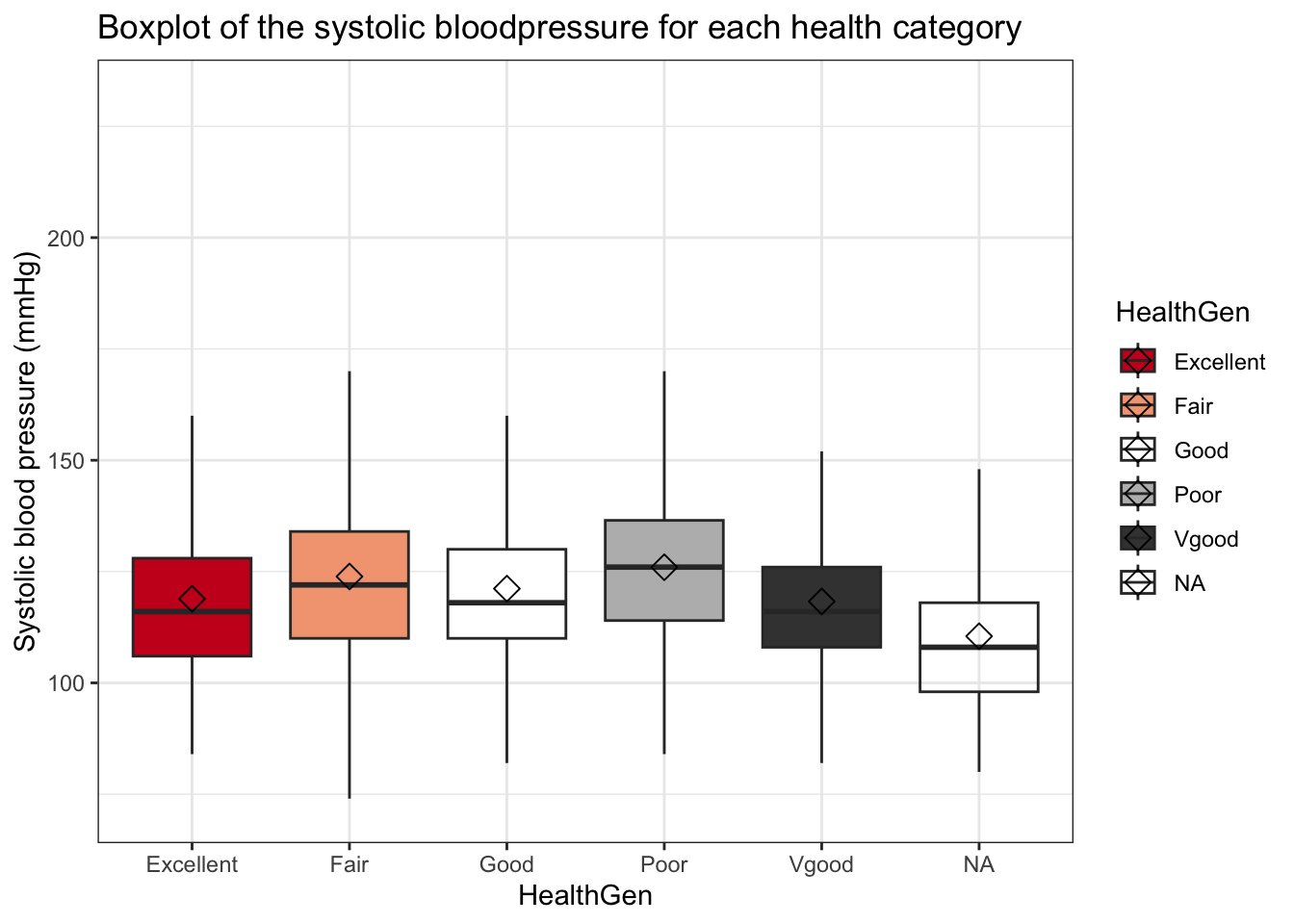 ggplot(aes(x = HealthGen, y = BPSys1, fill = HealthGen)) +