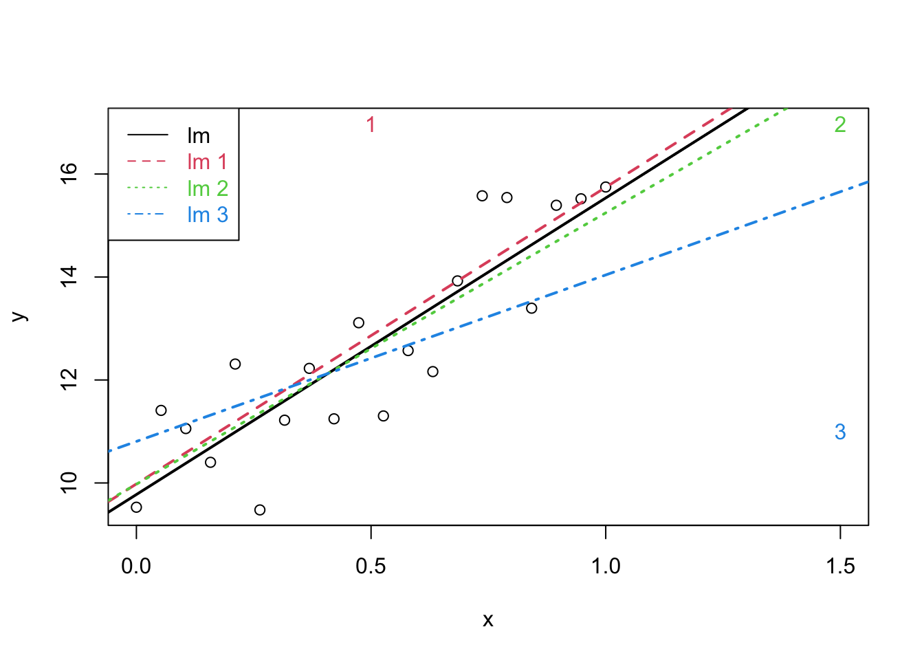 legend("topleft", col = 1:4, lty = 1:4, legend = paste("lm", c("", as.character(1:3))), text.col = 1:4)
