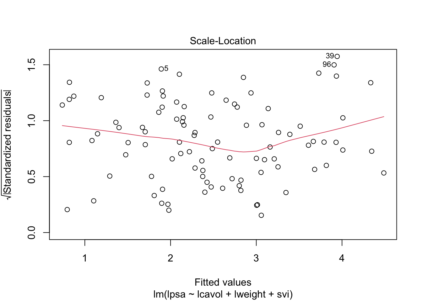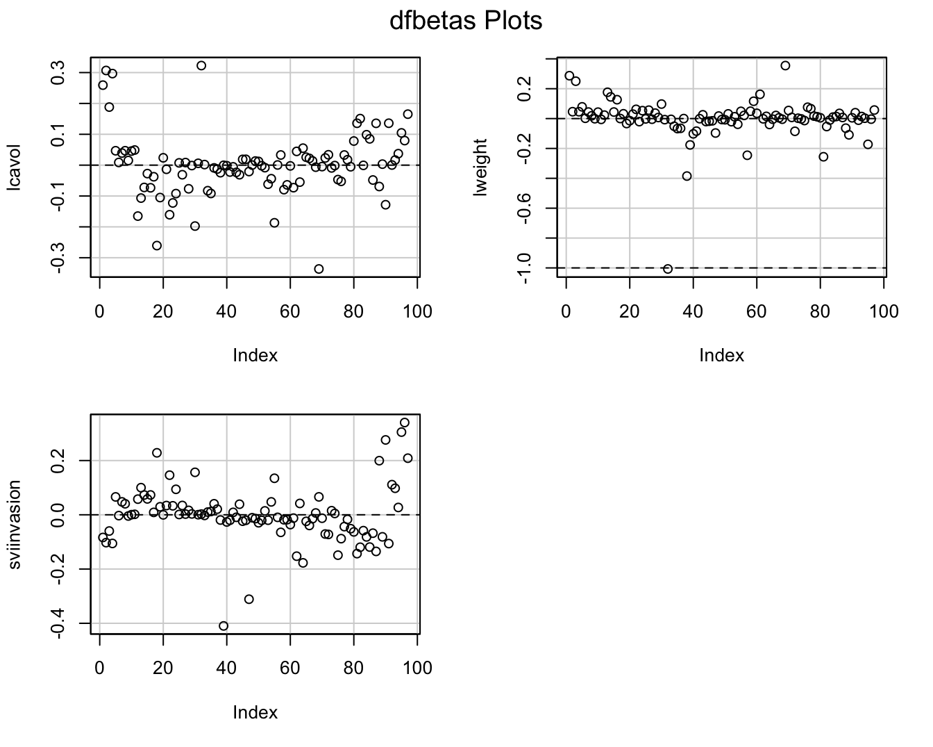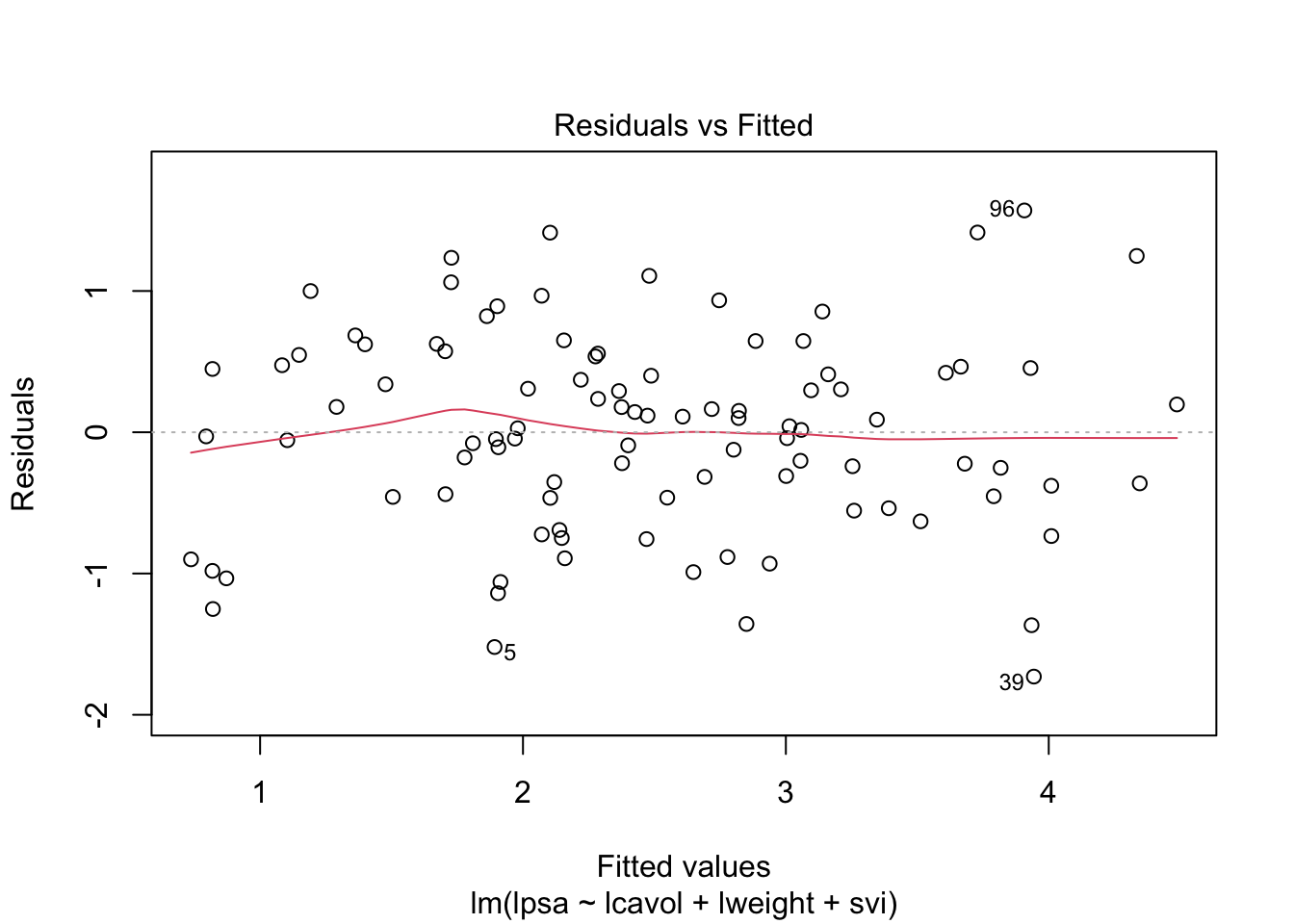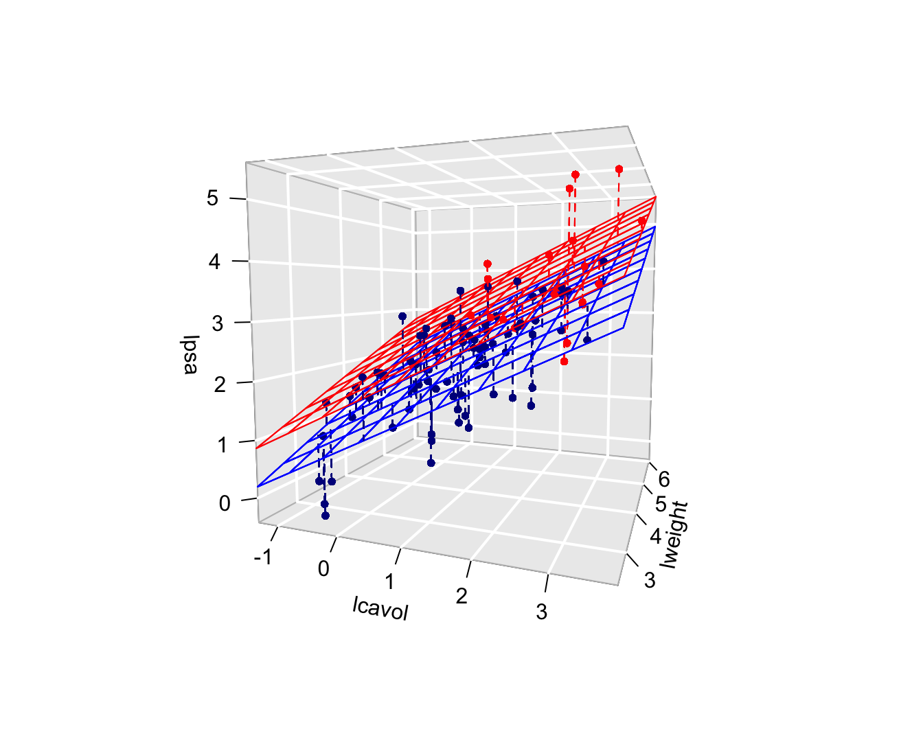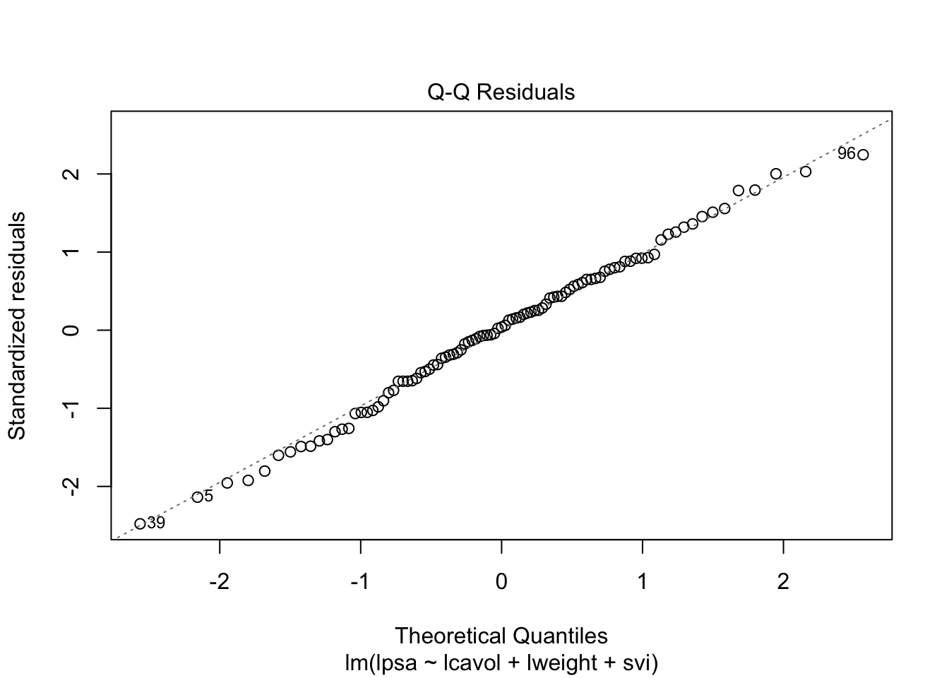 lm(formula = lpsa ~ lcavol + lweight + svi, data = prostate)