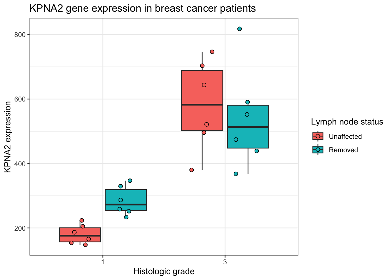 x = "Histologic grade", y = "KPNA2 expression",