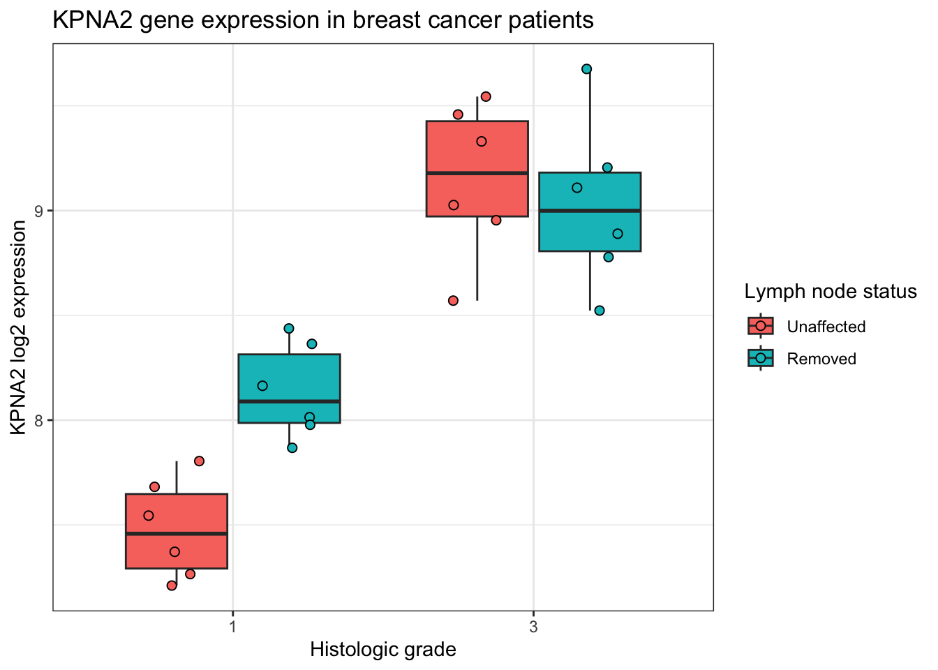 x = "Histologic grade", y = "KPNA2 log2 expression",