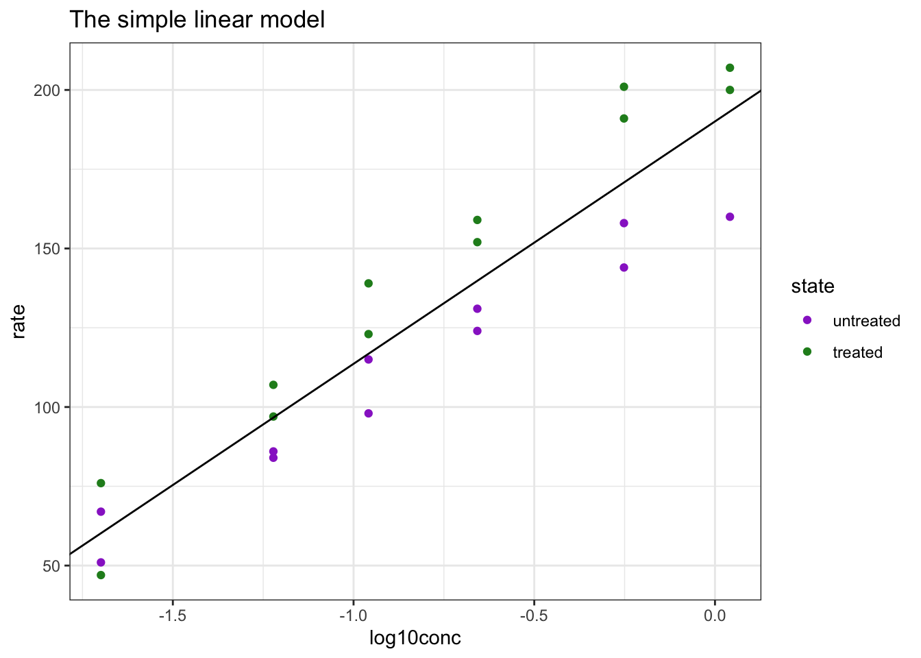 mod_simple <- lm(rate ~ log10conc, data = Puromycin)