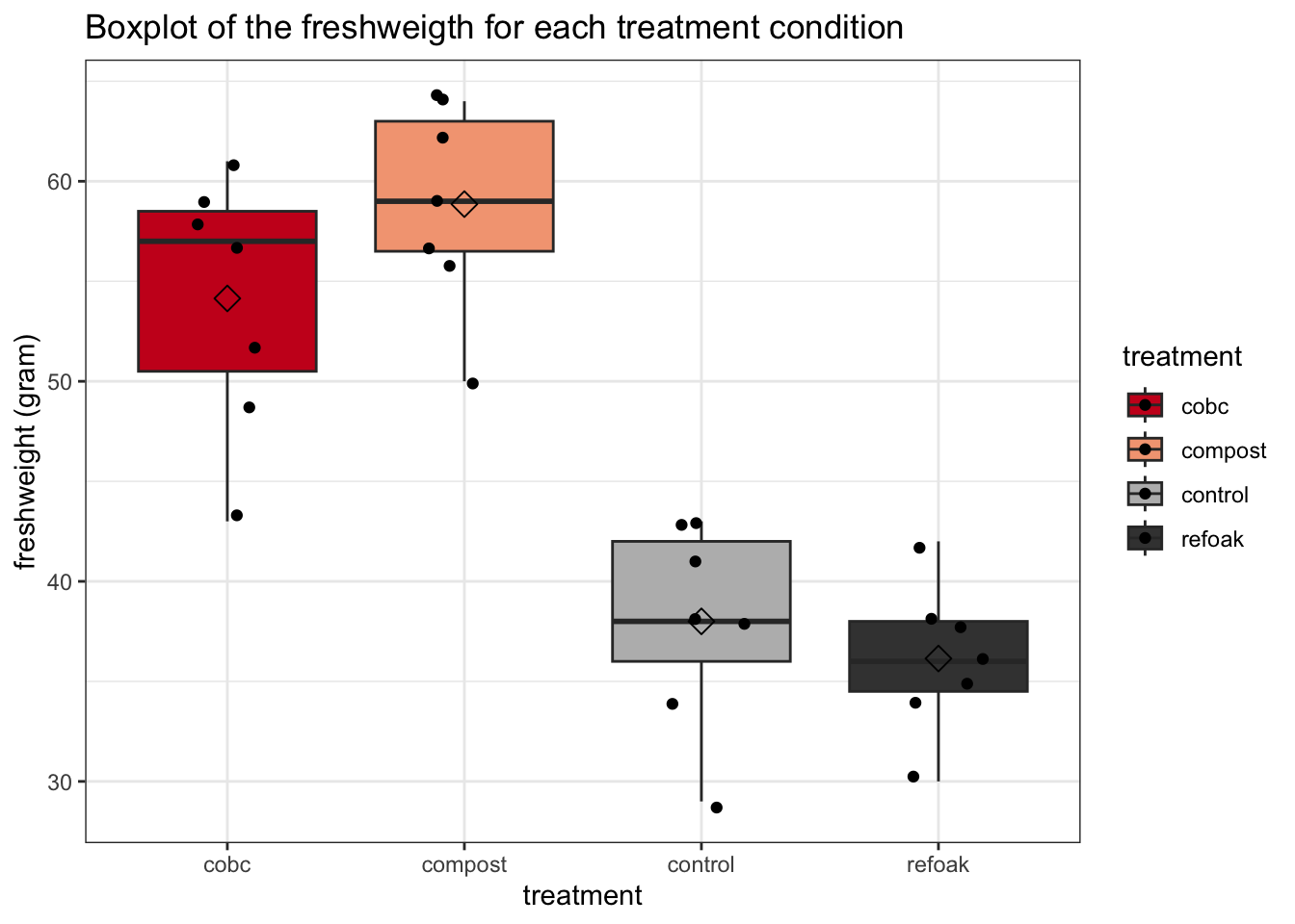 ggplot(aes(x = treatment, y = freshweight, fill = treatment)) +